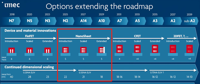 IMEC的路线图也指出,随着N2工艺节点的到来将进入NanoSheet架构时代。