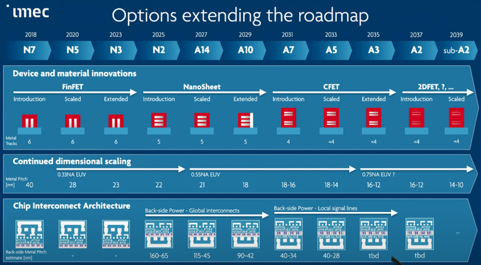 近日,YouTube博主@TechTechPotato在视频中,深入分享并解读了IMEC(比利时微电子研究中心)发布的半导体工艺路线图。