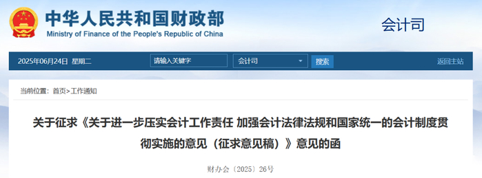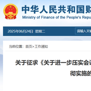 (三)形成《意见》。2025年4月至5月,先后赴大连、广东等地开展调研,听取地方财政部门、企业、行政事业单位、会计师事务所、代理记账机构、有关行业协会等方面意见;2025年5月,组织财政部有关司局和单位进行研讨,组织部分企业财务负责人进行研讨;2025年5月至6月,组织征求财政部相关司局和单位意见。在充分吸收采纳有关方面意见的基础上,形成《意见》。