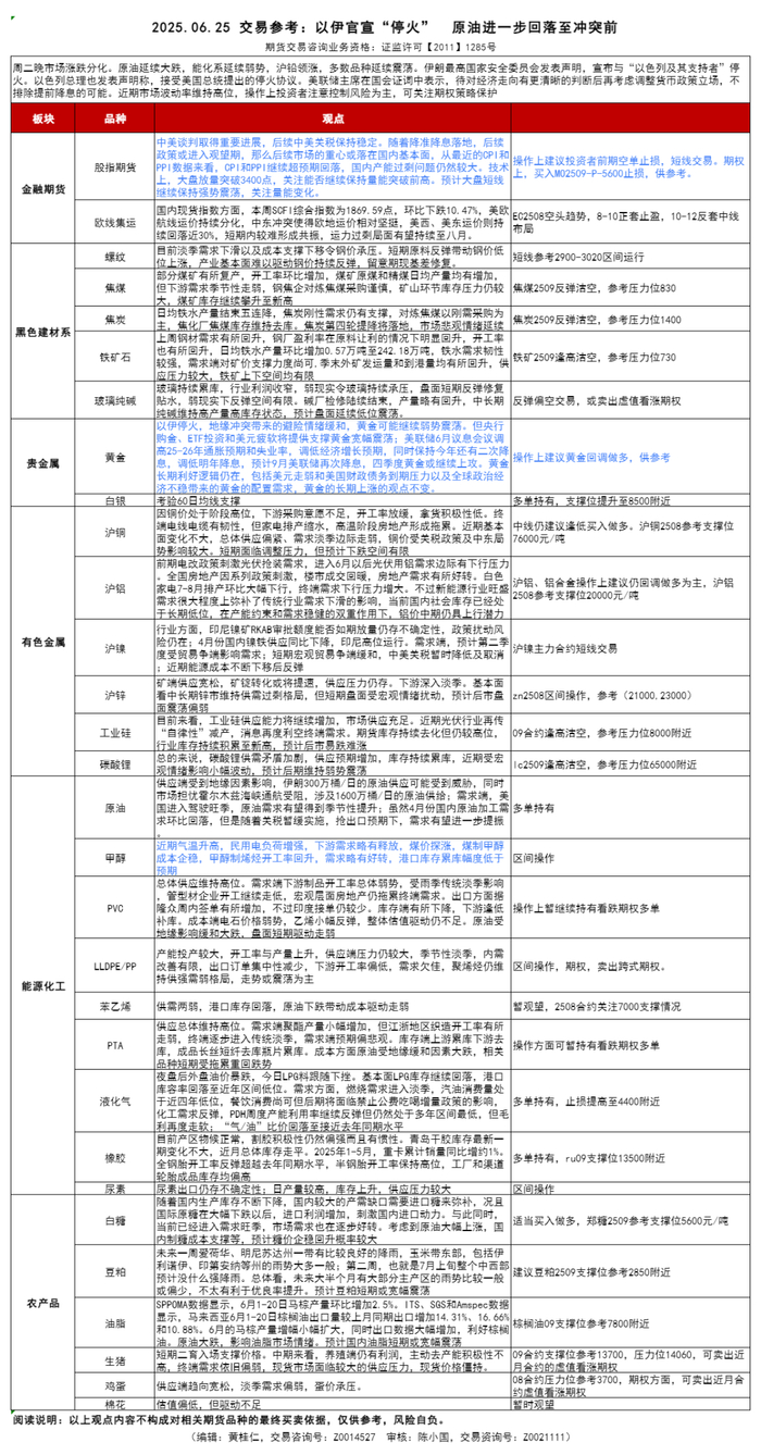 【交易参考】6.25:以伊官宣“停火” 原油进一步回落至冲突前