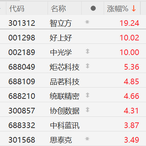 格隆汇6月25日|A股市场AI眼镜概念股走强,其中,智立方涨超19%,好上好、中光学10CM涨停,炬芯科技涨超5%,统联精密、品茗科技、协创数据涨超4%,中科蓝讯、思泰克涨超3%。