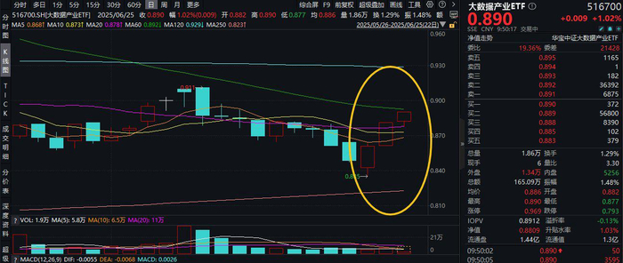 今日(6月25日)大数据产业方向继续活跃,截至发稿,奥飞数据、科华数据携手涨超5%,润泽科技涨逾4%,光环新网涨超3%,热门ETF方面,专注数据科技领域的大数据产业ETF(516700)早盘活跃,场内价格现涨1.02%,冲击日线3连阳!