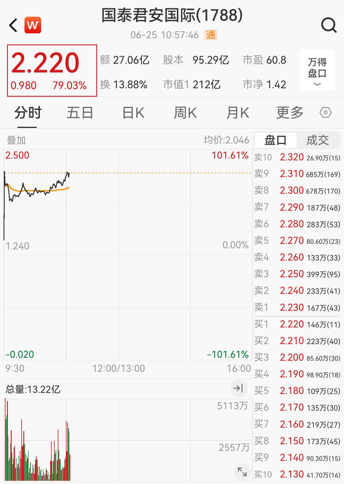 获批后,国泰君安国际客户将可直接通过平台交易比特币、以太坊等主流加密货币及稳定币。市场对此反响热烈,国泰君安国际股价盘初即飙升超过80%,盘中最高涨幅更是一度突破100%,