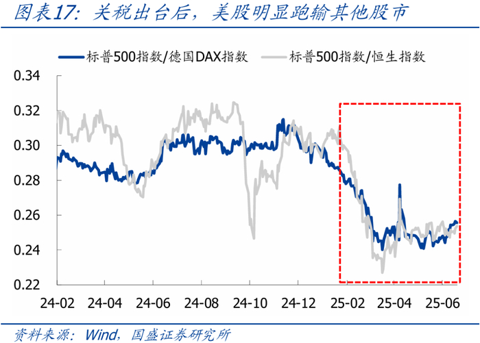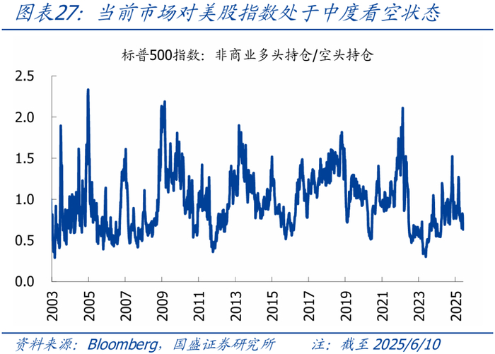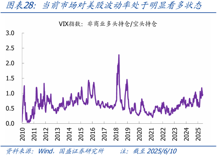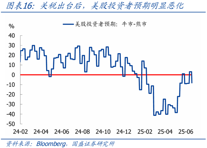 经济预测恶化导致全球股票和大宗商品等风险资产在2-4月经历大幅下跌,关税缓和后虽然有明显反弹,但AAII调查显示,截至6月下旬,投资者预期未来半年美股是熊市的概率仍高于牛市的概率,这与关税出台前投资者始终认为美股是牛市形成了鲜明对比。往后看,若关税不能缓和,市场对经济衰退风险的担忧也难以消退,这会导致风险偏好持续处于低位。