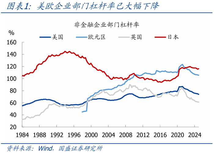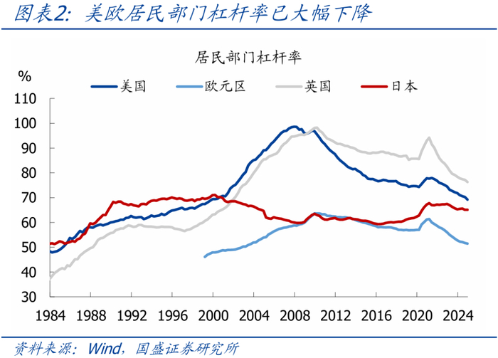 年度海外展望中我们曾指出,2022-2024年海外主要国家处在去杠杆的阶段,这一过程伴随着债务违约和企业破产增加,对经济形成了明显拖累。在经历三年多的去杠杆之后,截至2024Q4,美欧非金融企业杠杆率已明显低于2020年之前,居民杠杆率更是已降至2000s初的水平;日本企业和居民杠杆率在过去几年不降反升,主要原因在于日本之前已经历了二十多年的去杠杆阶段,现在已进入新一轮加杠杆周期。综合看,在海外主要经济体企业和居民资产负债表均较为健康的状态下,全球经济内生动能已明显修复,若没有关税的影响,则全球经济继续大幅下行的风险较低。