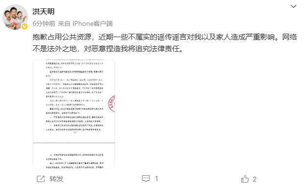洪天明则表示出轨事件很搞笑,妻子牵手的男子,他也相识,大家是好朋友,指控媒体报道不实。