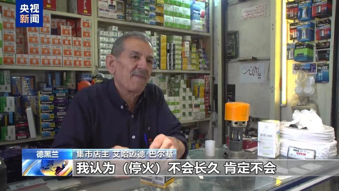 集市店主 艾哈迈德·巴尔基:我认为美国和以色列遭到的打击,会让他们寻求报复,他们很可能再次发起攻击。我们对停火表示欢迎,但这样的停火无法实施下去,他们不会信守承诺。