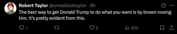 还有网友认为,“让唐纳德·特朗普按你的意愿行事的最好办法就是拍他马屁。从这件事上就能明显看出这一点”。