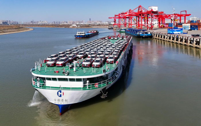 2025年1月15日,安徽港航集团投资建造的首艘“330车位”内河滚装船交付运营,同日开通合肥派河港—上海海通码头内河滚装航线。
