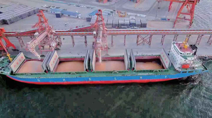营口港粮食码头正在进行“北粮南运”粮食装船作业