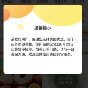 记者随即打开社交平台发现,6月23日以来,多地网友晒出打开美团优选小程序后,提示的“由于业务局部调整,您所在区域将暂停接单”的弹窗截图。但是,记者在美团官方渠道并未找到正式公告。