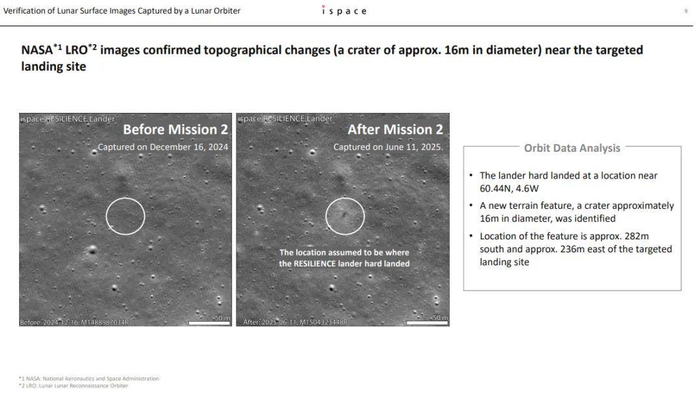 这不,在在2025年6月6日,日本“韧性”号在月球北半球的 Mare Frigoris(“冷海”)平原着陆,但着陆器在预定着陆前失去联系,导致从软着陆变成了硬着陆,而在6月24日,日本发布了整体报告。