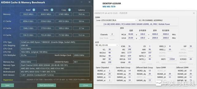 我们还测试了XMP 8000MT/s在微星MPG B850I EDGE TI WIFI刀锋钛主板的性能表现,开启A-XMP一键拉到8000MT/s进行测试。