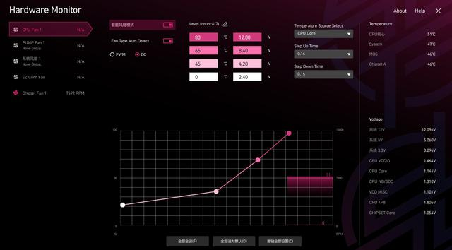 EZ Mode顶部同样包含一些重要功能设置,比如M-FLASH的BIOS功能,还有下面的Hardware Monitor用来调整风扇。