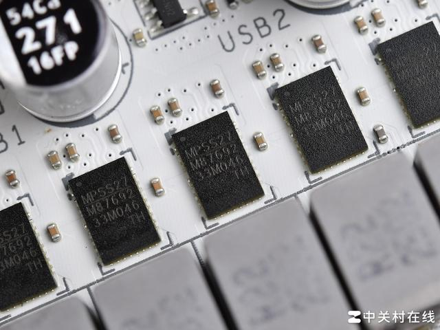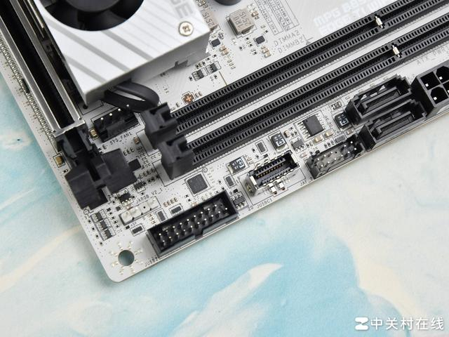 而前置USB方面,微星准备了一组USB 2.0接针,一组USB 3.2 Gen1 Type-A(5Gbps)接针和一组USB 3.2 Gen2 Type-A(10Gbps)接针。