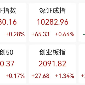 A股市场早盘震荡走高,创业板指跳空大涨。截至收盘,沪指涨0.28%,深成指涨0.64%,创业板指涨1.34%。