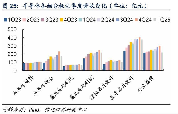 对于国内半导体而言,在复苏大势下,已经连续7个季度收入同比增速为正。而在细分行业中,半导体设备和数字芯片设计增速尤为突出。