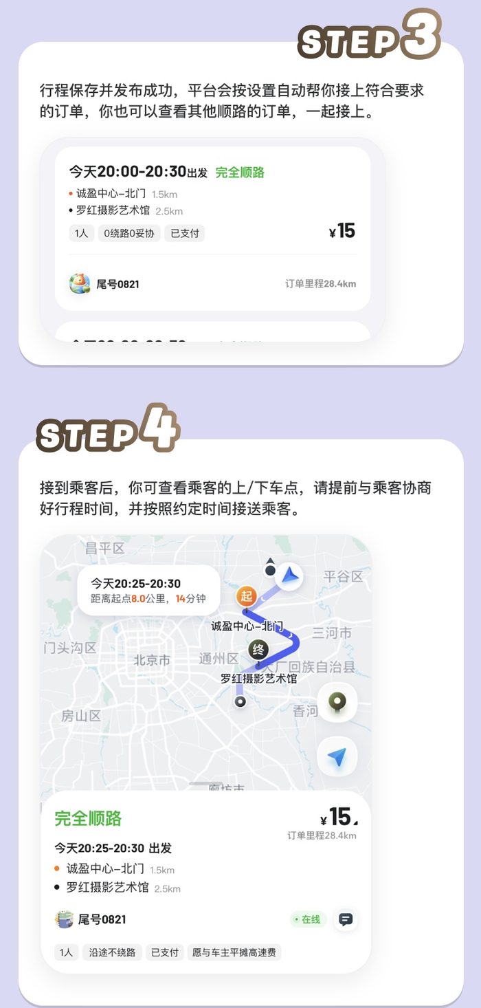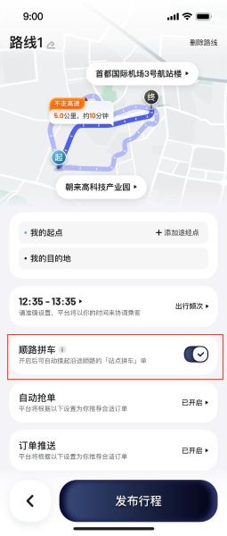 站点拼车自动抢单可单独设置 车主更顺路、匹配更高效