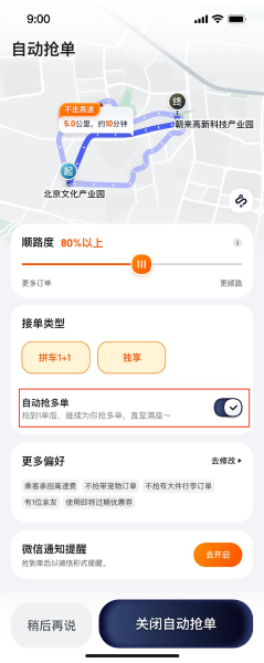 自动抢单新增多项个性化设置,全面提升车主掌控感