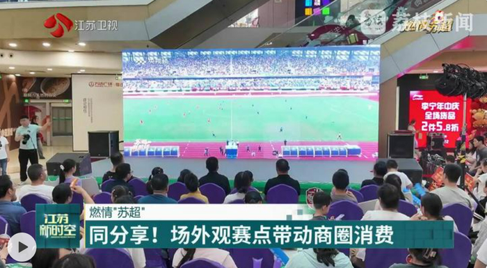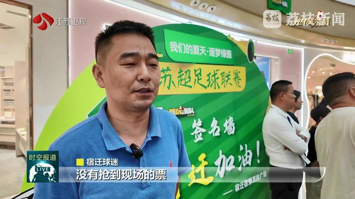 宿迁球迷说:“没有抢到现场的票,没有去感受现场氛围。在商场里,氛围也非常好。”