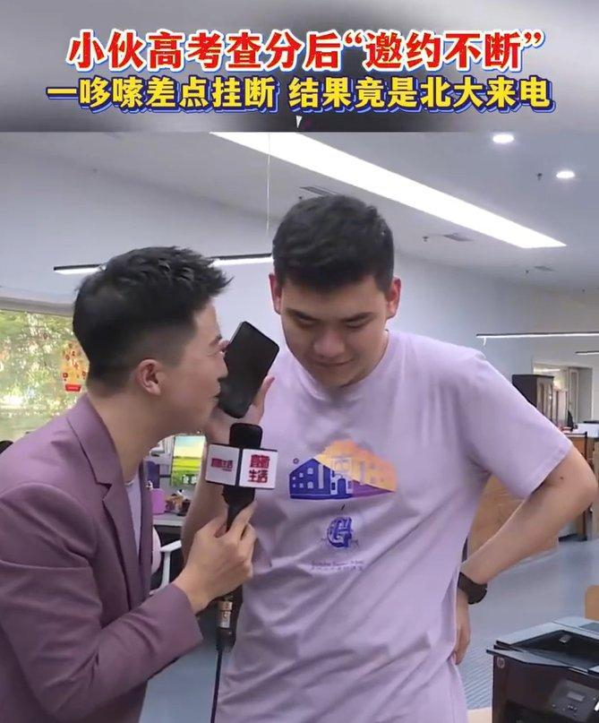 直播生活消息,6月24日,沈阳。小伙高考715分,查分后“邀约不断”,正接受电视台采访时又接到另外一个记者的采访邀约,刚挂断电话,北大招生组又打来了电话。