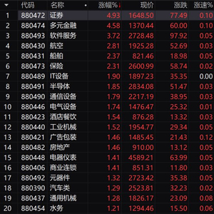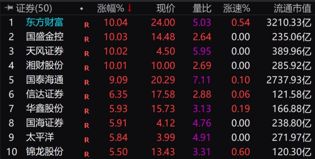 又是金融股搭台,题材股唱戏的一天。今天,券商股受国泰君安国际的影响,整体大幅走高。天风证券午后涨停,国盛金控、湘财股份、瑞达期货、建元信托、爱建集团、新力金融、弘业期货等多只股票涨停,此外,指南针拿下20%涨停,财富趋势涨超17%,银之杰涨超15%。