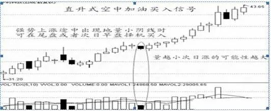 强势上涨途中出现地量小阴线时,可在尾盘或者次日早盘逢低择机买入。量越小,次日涨的可能性越大。