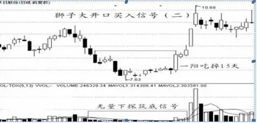 一般在低位整理中,突然一天,大阳崛起,吃掉前半月天以上的K线形态。可在尾盘或者次日早盘逢低择机买入。