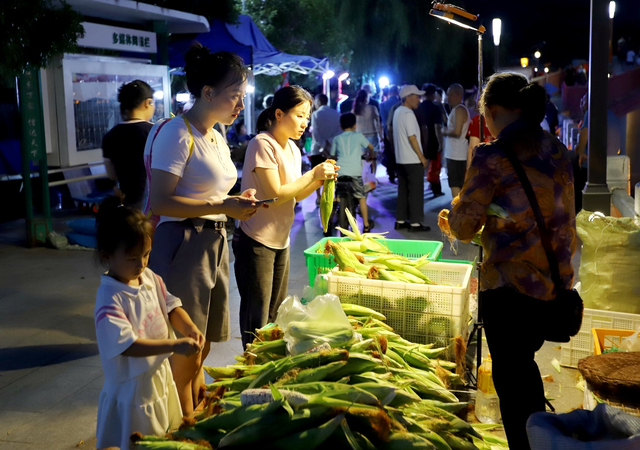 市民在夜市购买玉米