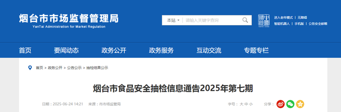 山东省烟台市食品安全抽检信息通告2025年第七期