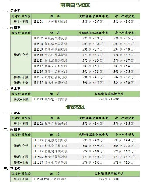 历史类7000名(595左右)以内、物理类27000名(609左右)以内考生报考我校专业组,录取希望非常大;