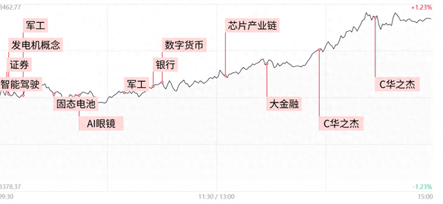财联社6月25日讯,市场全天震荡拉升,沪指创年内新高,创业板指涨超3%。沪深两市全天成交额1.6万亿,较上个交易日放量1882亿。盘面上,市场热点集中在金融、军工等方向,个股涨多跌少,全市场超3900只个股上涨。从板块来看,金融股持续爆发,国盛金控等多股涨停,中、农、工、建四大行续创历史新高。军工股集体走强,长城军工等10余股涨停。芯片股震荡拉升,台基股份20CM涨停。下跌方面,油气股延续调整,准油股份连续跌停。截至收盘,沪指涨1.03%,深成指涨1.72%,创业板指涨3.11%。