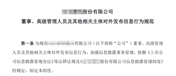 根据《上市公司信息披露管理办法》第三十四条的规定,上市公司应当制定董事、高级管理人员对外发布信息的行为规范,明确非经董事会书面授权不得对外发布上市公司未披露信息的情形。
