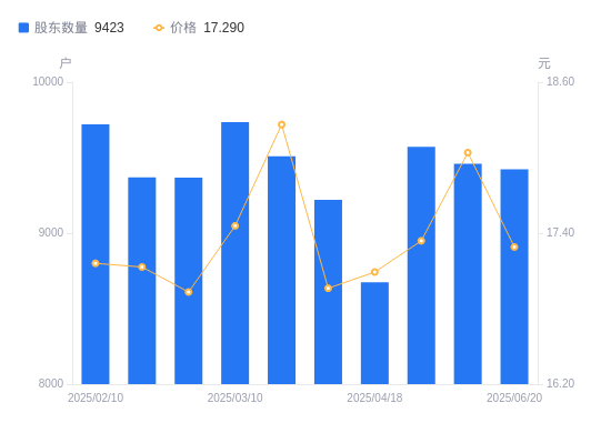 近一年(2024年6月30日至2025年6月20日),坤泰股份A股股东户数从1.18万户,减低至9423户,降幅20.11%,区间股价上涨24.98%。