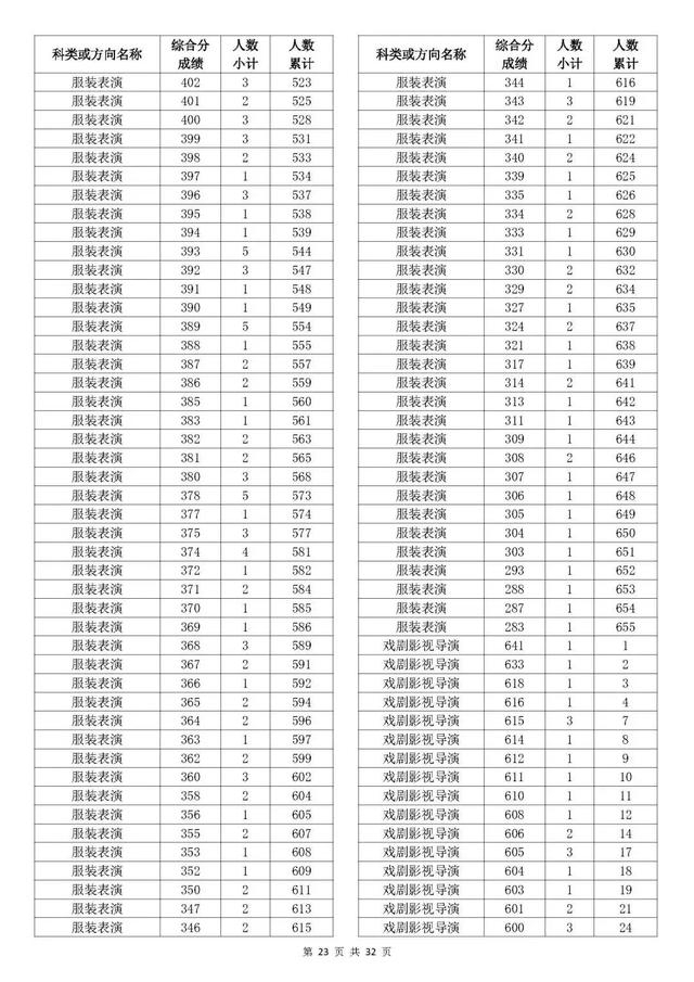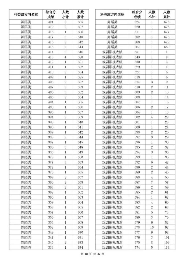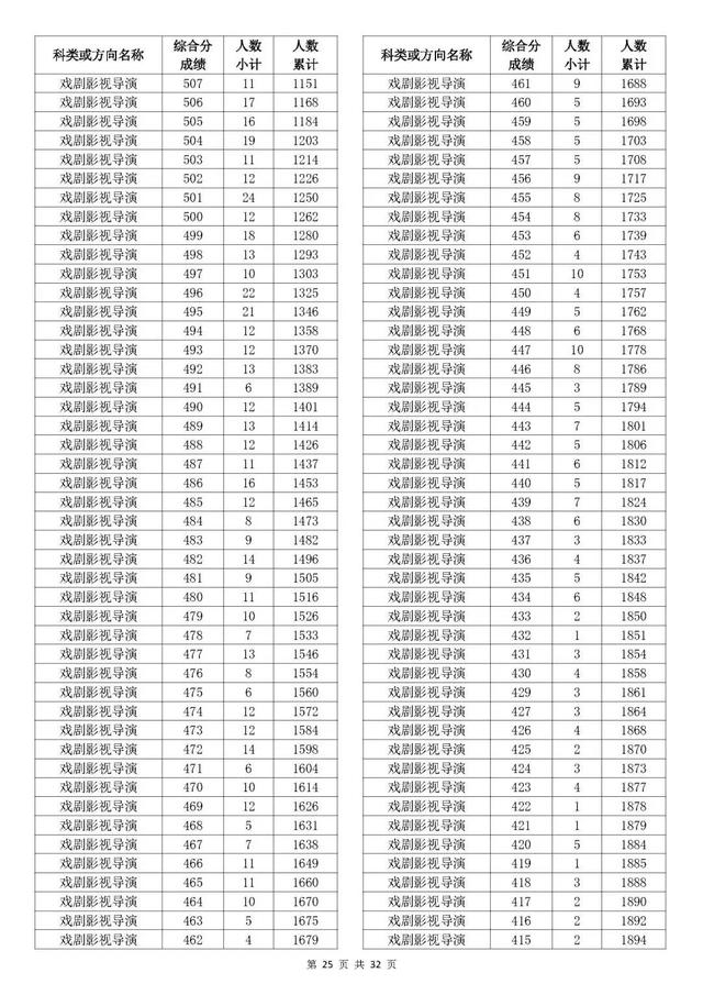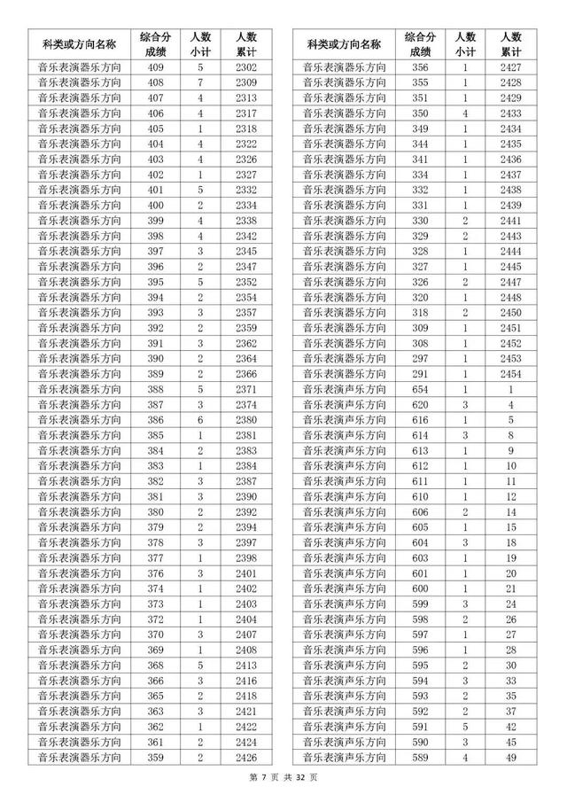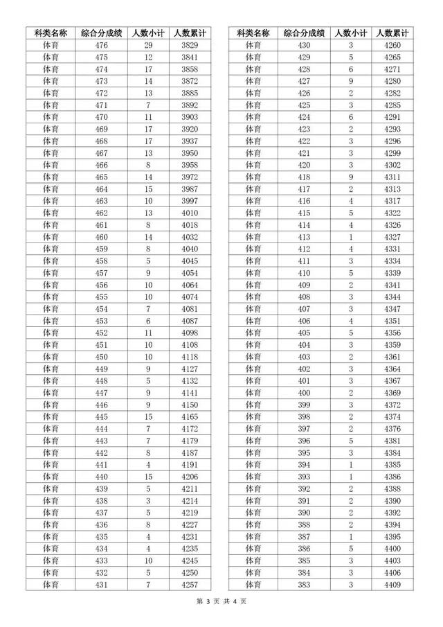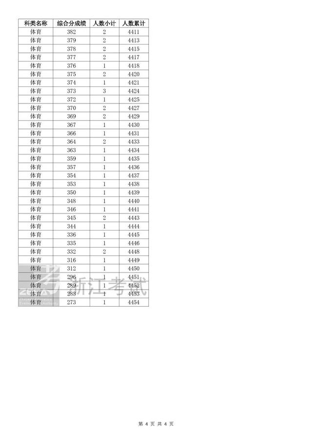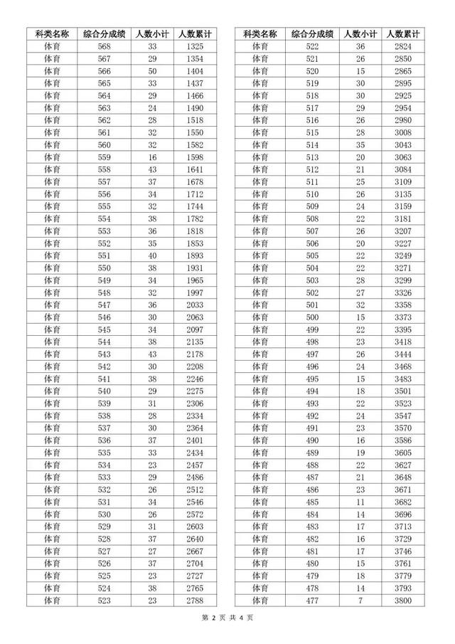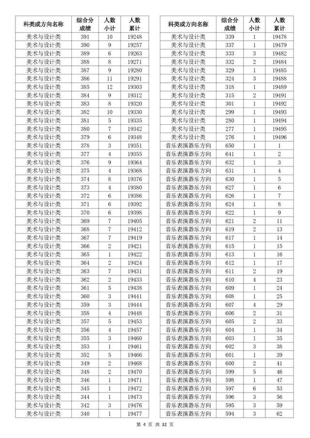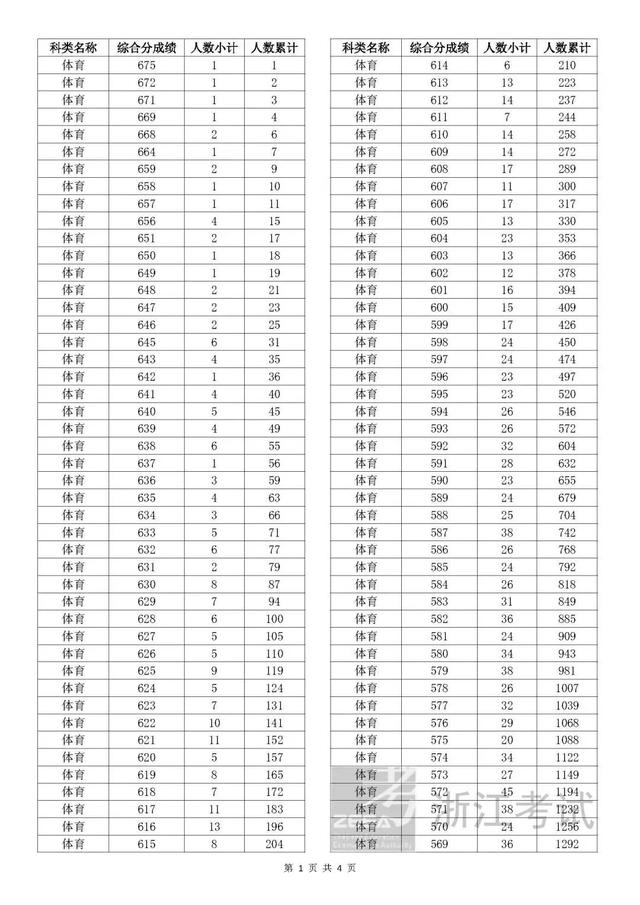 考生综合分分段表