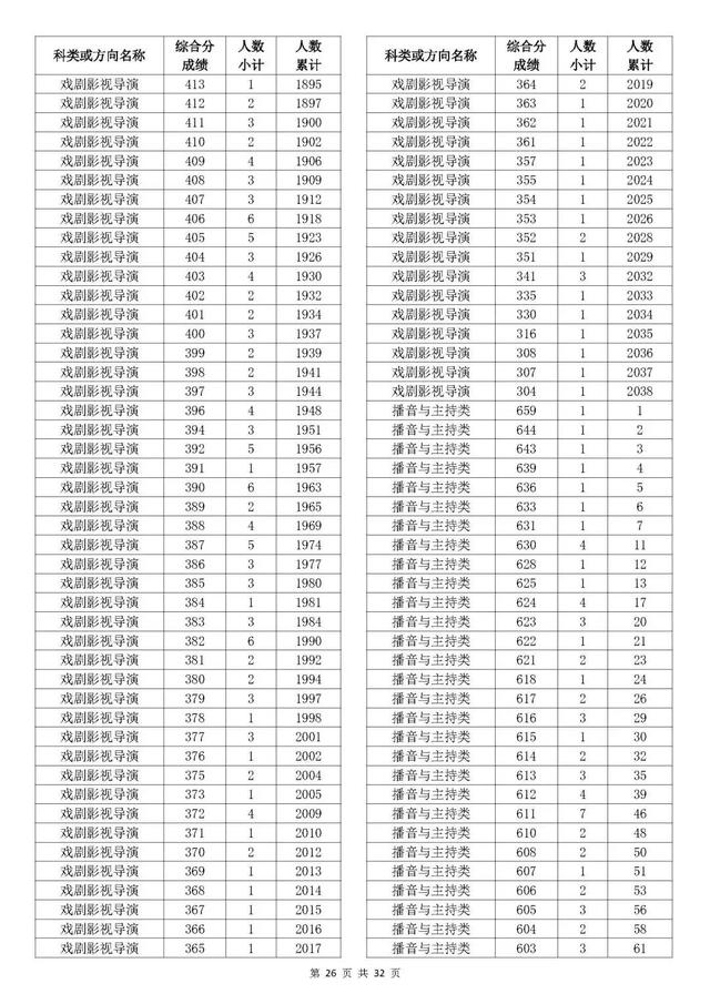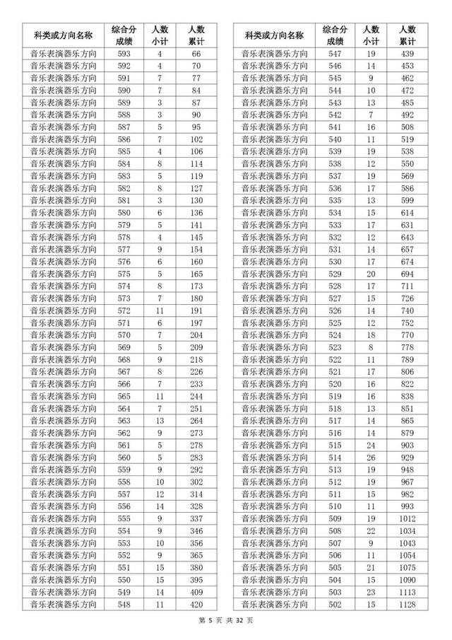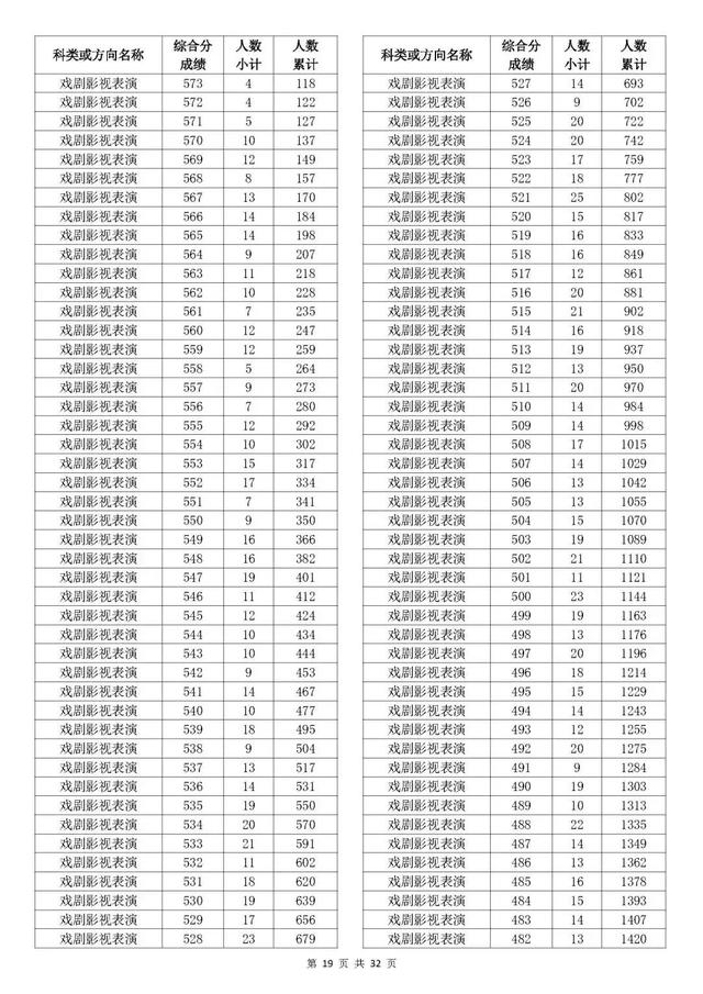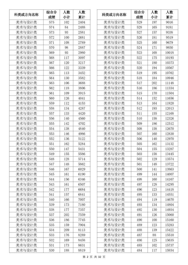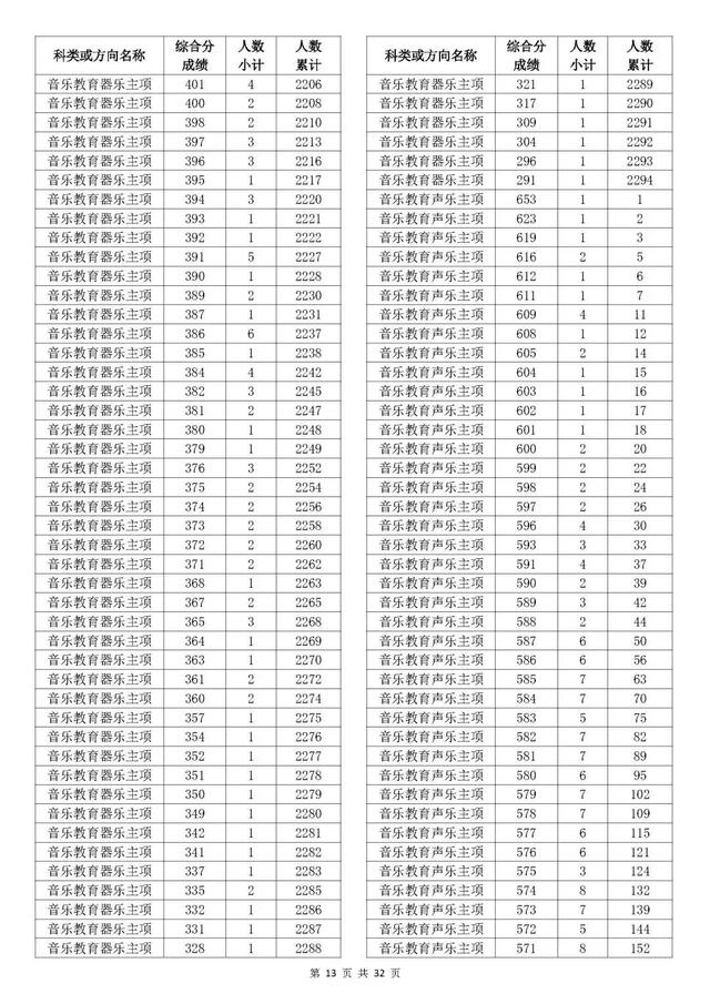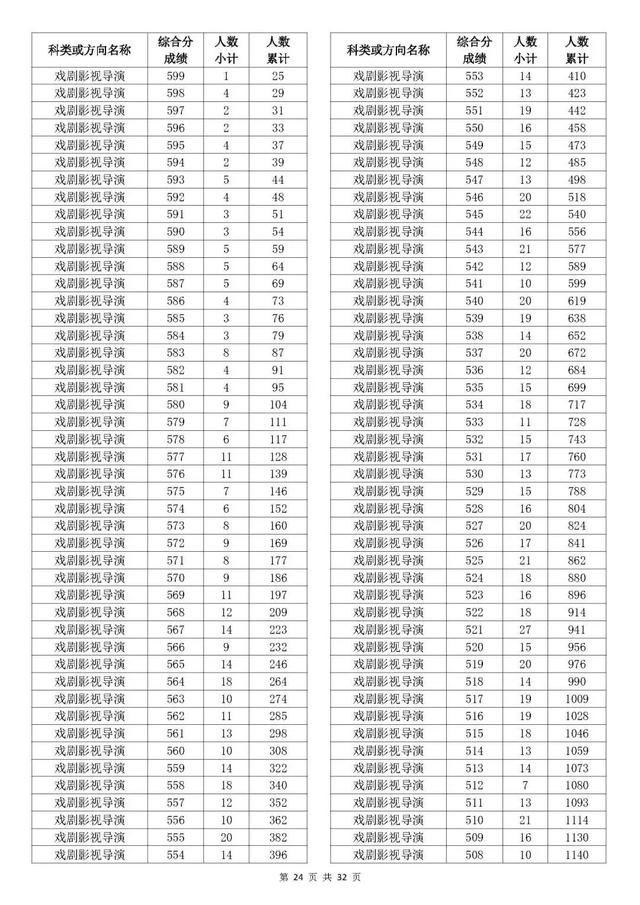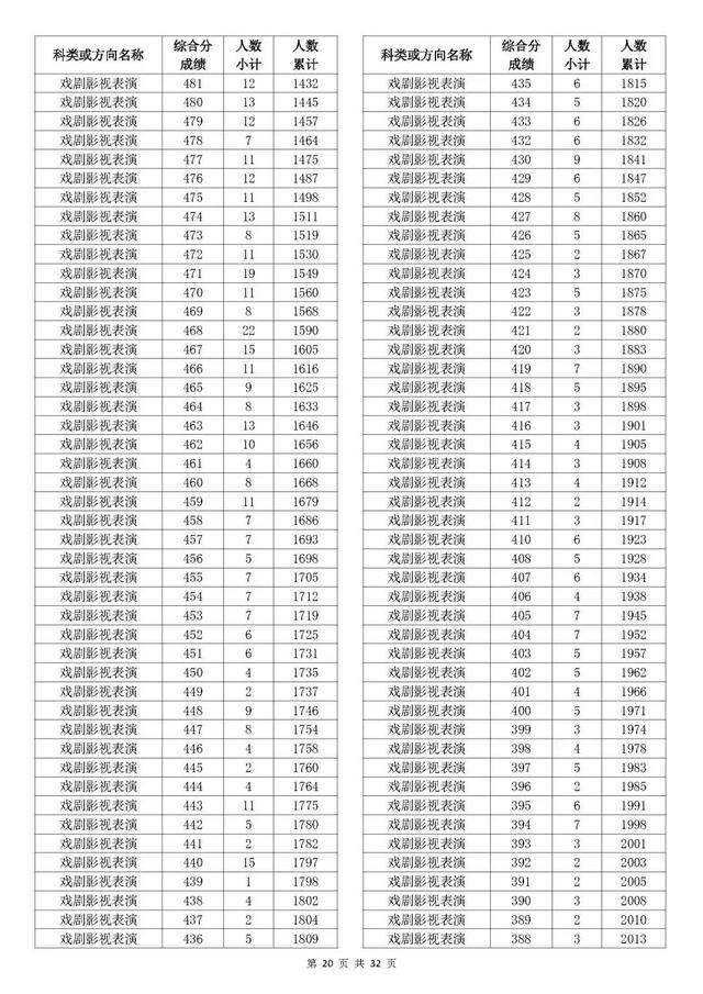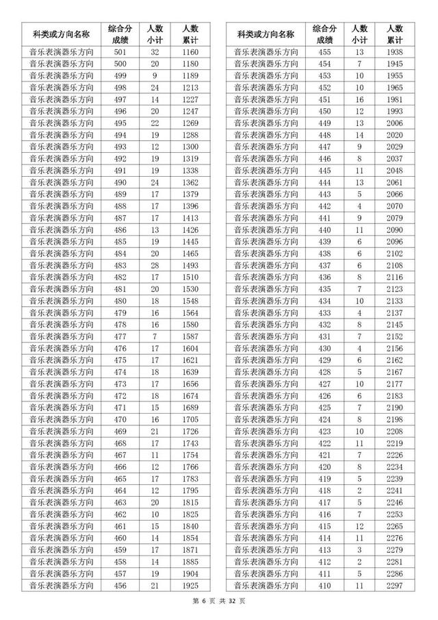 考生综合分分段表