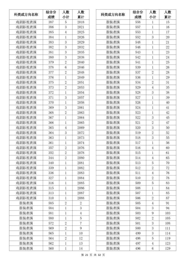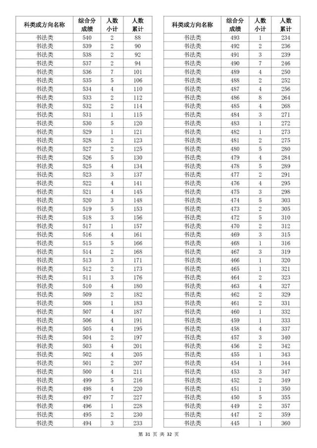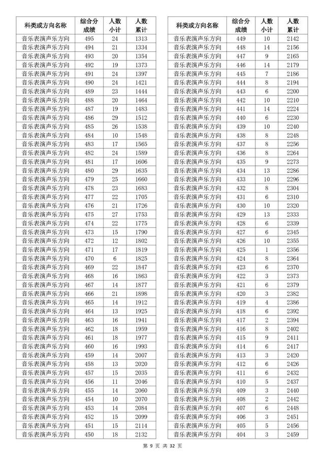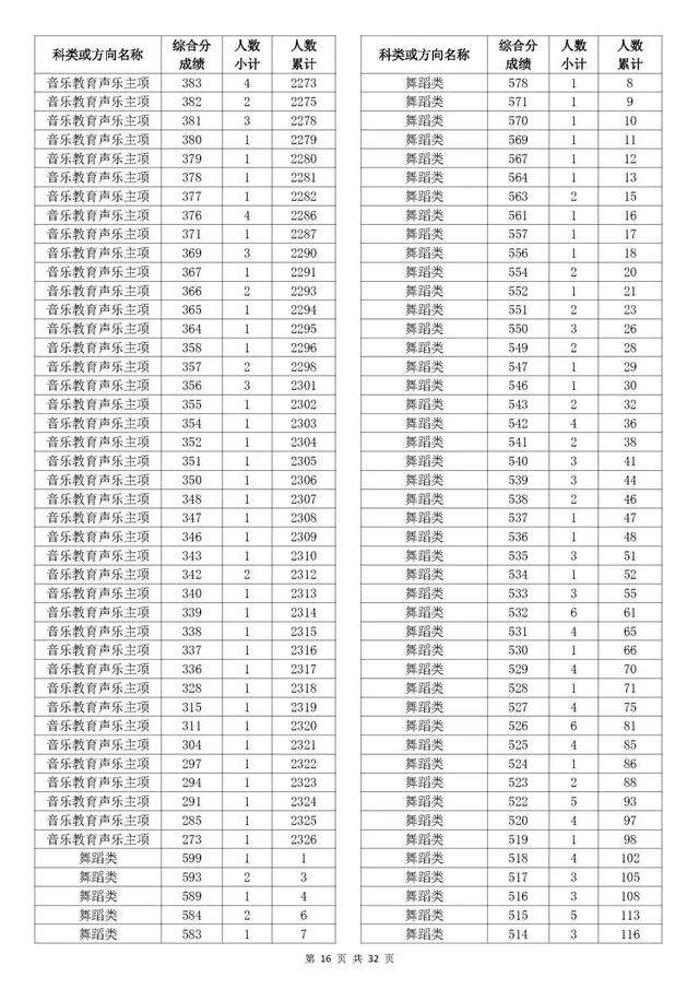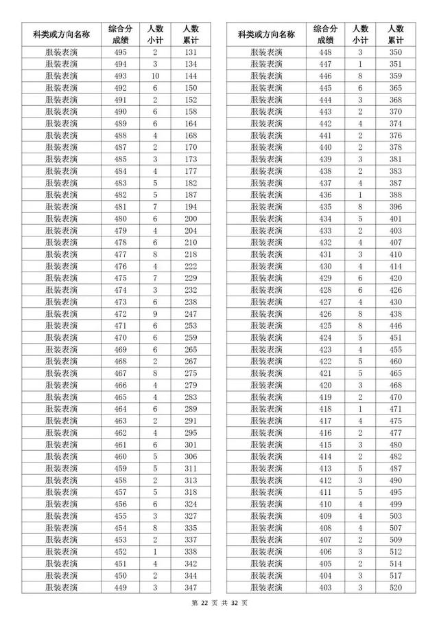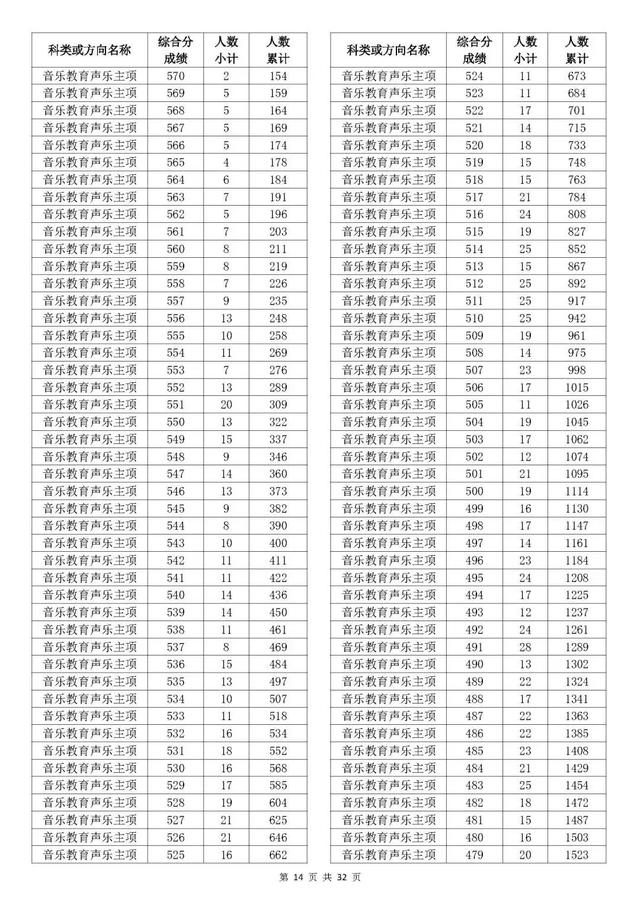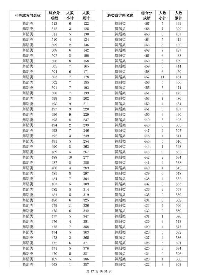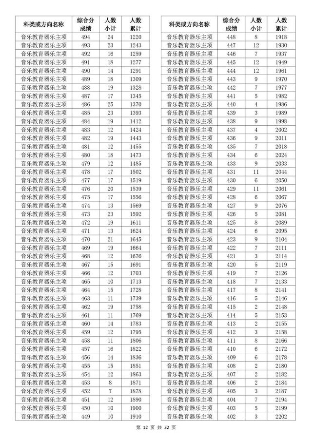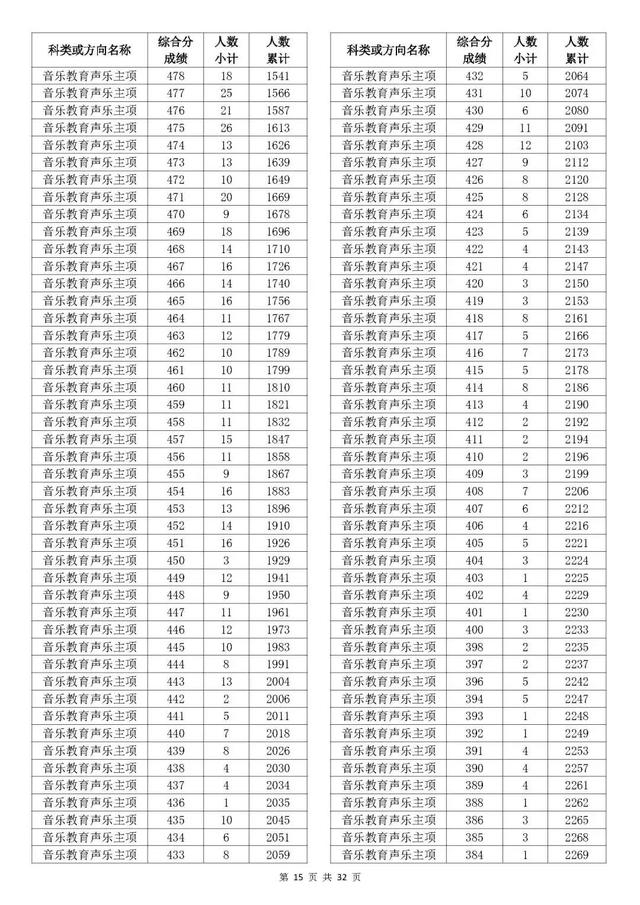 考生综合分分段表