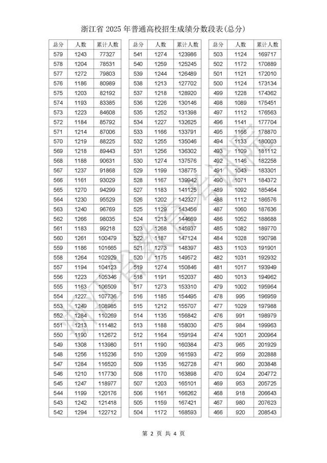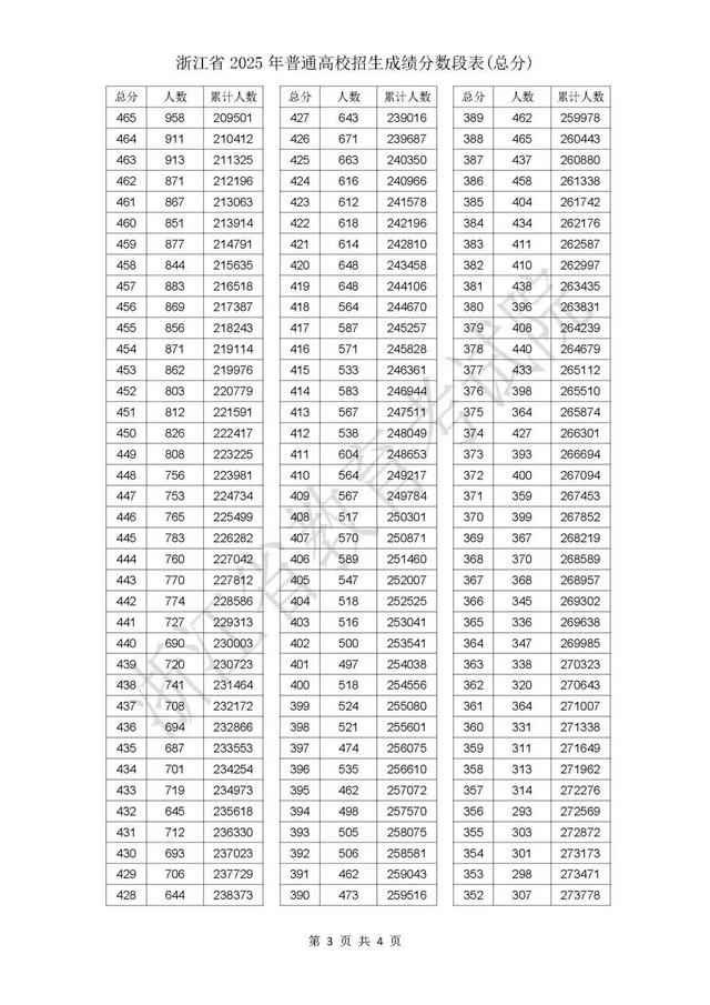浙江省2025年普通高校招生考试成绩和各类别分数线发布后,高考各类别成绩(综合分)分数段表随即出炉。考生可结合成绩分布情况和自身位次信息,了解自己在同类别考生中的位置,作为志愿选择和定位的参考。
