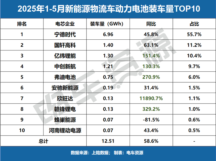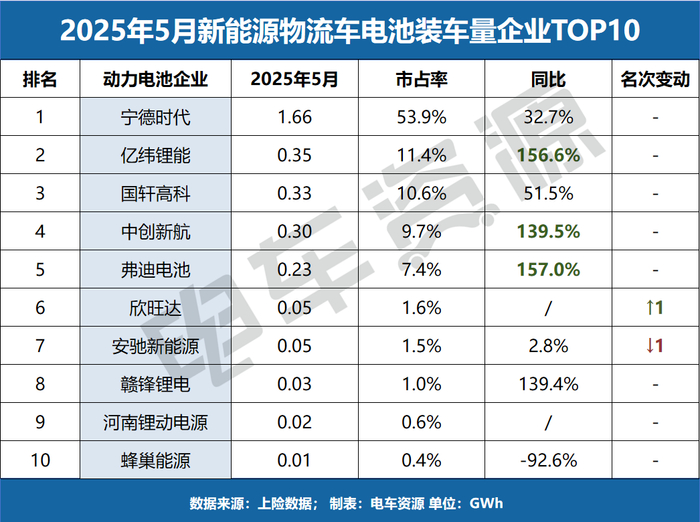 一起看看5月新能源汽车动力电池装车量TOP10电池企业的具体表现。