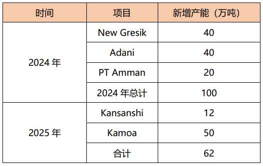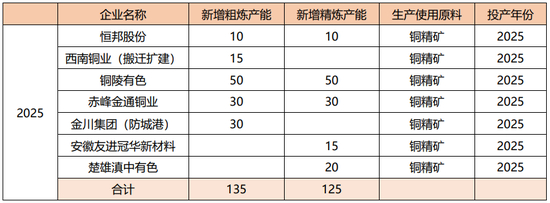 表 3.5:国内新增冶炼产能(单位:万吨)
