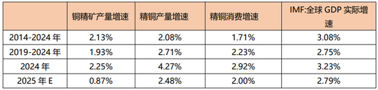 表 3.1:全球铜矿、冶炼、消费和GDP增速对比