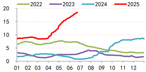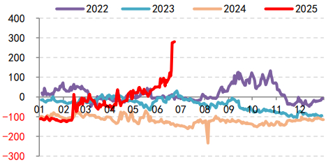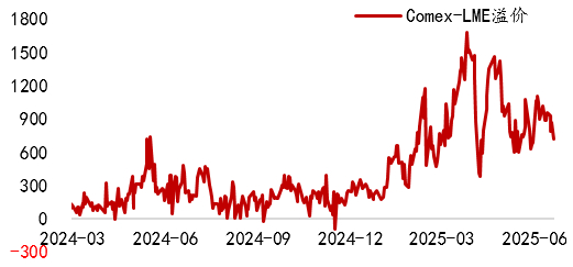 海外方面,2025年2月美国宣布对铜启动232调查,市场预期美铜进口未来将面临25%的关税。随后COMEX-LME铜溢价大幅走高,在贸易套利的背景下全球精铜向美国大幅流动。在虹吸效应下,中国和LME二季度均出现了大幅去库。据美国海关数据,1-4月精铜进口46万吨,同比增长100%。其中4月美国单月铜进口量接近20万吨,5月、6月份进口量预计仍将高于往年。