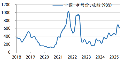 2025年长单TC为21.25美元/吨,处于历史低位。铜精矿紧张并未完全有效传导至冶炼端,部分原因是大冶炼厂签的长单价格可以保证冶炼盈利(副产品硫酸收益见图3.2),另一方面就是废铜的补充。