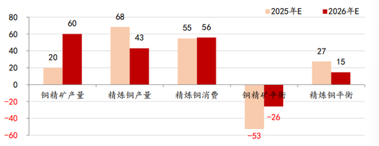 全球精铜冶炼:2025年长协TC处于历史低位,2026年长协谈判预计将继续下降。受原料紧张影响,冶炼端的增长将面临诸多的不确定因素,预计2025年精炼铜产量增长68万吨左右。