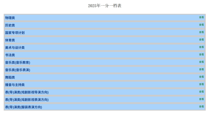 2025年一分一档表完整版
