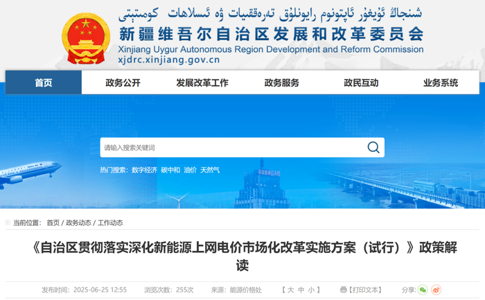 「风电之音」获悉,6月25日,新疆维吾尔自治区发改委发布《自治区贯彻落实深化新能源上网电价市场化改革实施方案(试行)》政策解读。