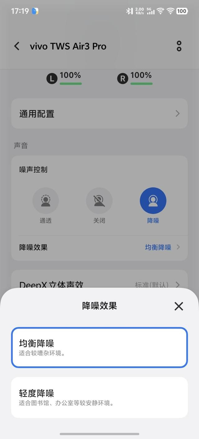 更贴心的是,耳机支持多档降噪模式自由切换。例如,在地铁通勤时选择“均衡降噪”,既能屏蔽大部分噪音,又能保留广播报站声;而在居家办公时,切换到“轻度降噪”模式,外界的轻微脚步声不会干扰专注力。