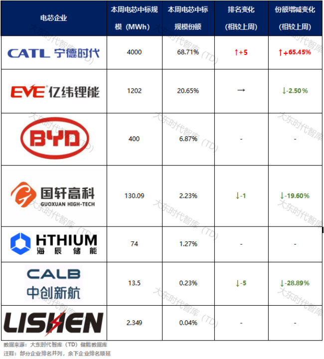 【金龙科技·储能资讯】宁德时代断层第一,中标规模达4000MWh!2025年第25周储能电芯中标排名公布