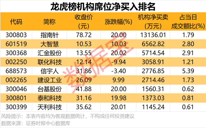 6月25日龙虎榜中,机构席位净卖出0.31亿元,净买入的个股有11只,其中9股金额超1000万元。