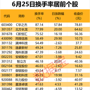 逸豪新材、海科新源、安妮股份、智立方等个股换手率均超40%。